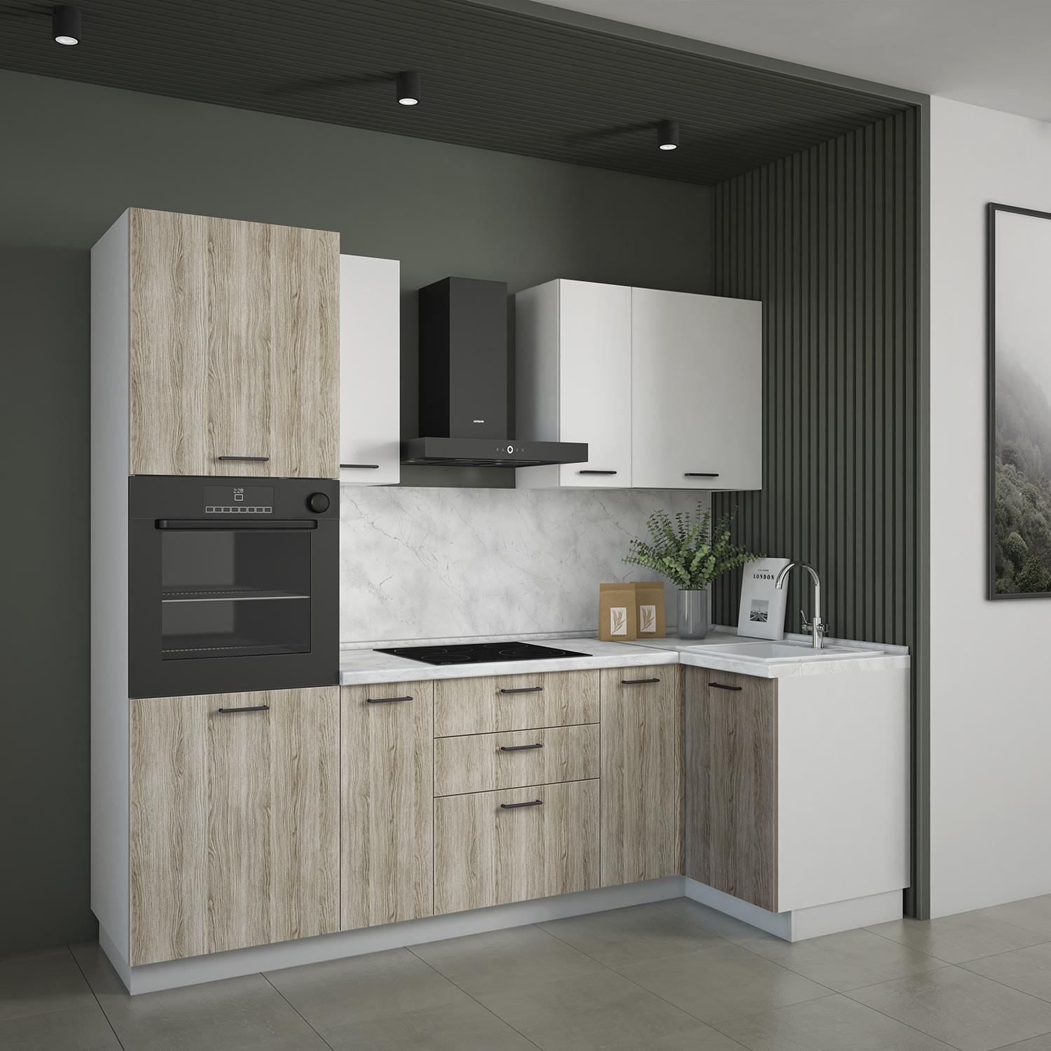 Кухонный гарнитур Рондо 10, 214x240x105x60 см, Белый, Дуб натуральный, левый