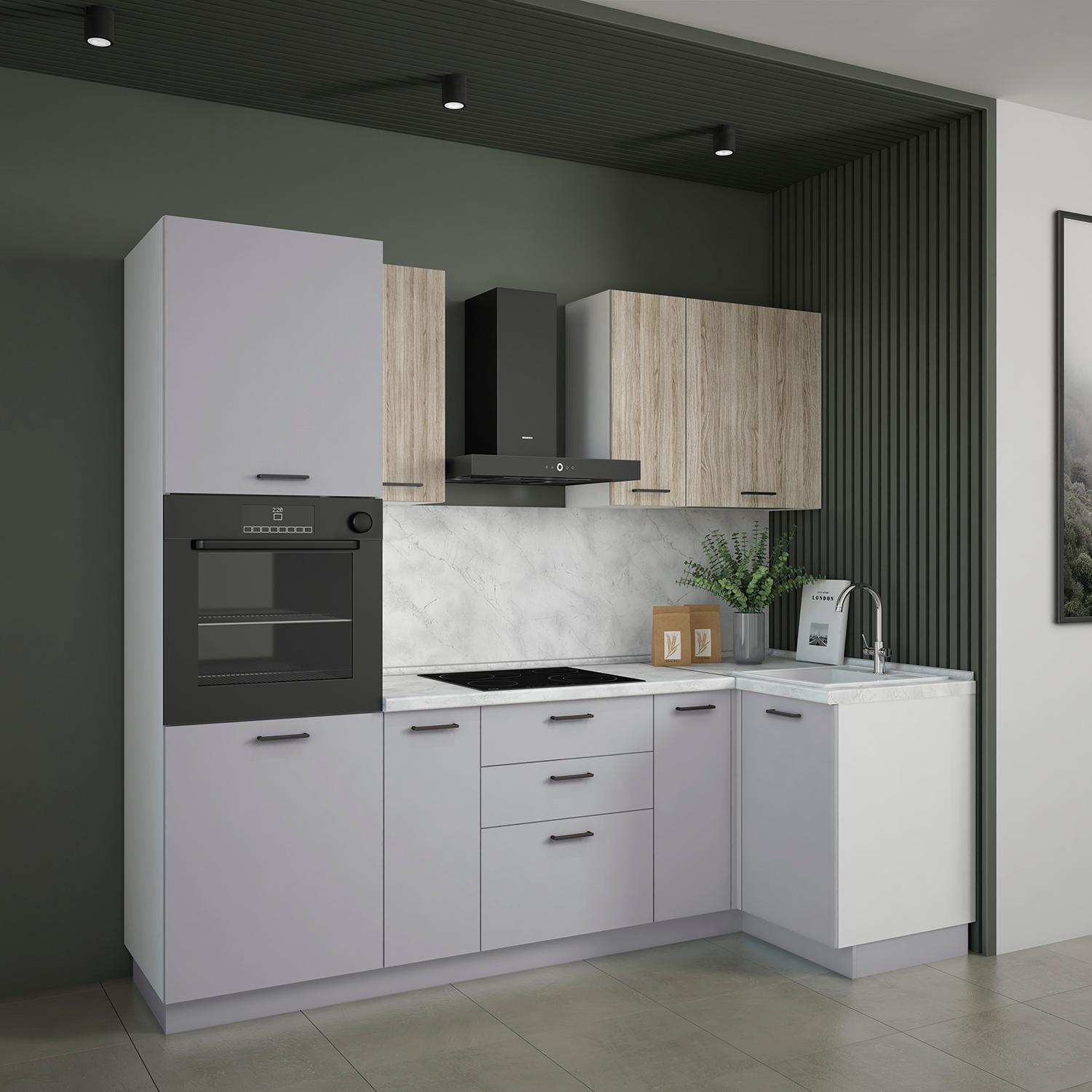 Кухонный гарнитур Рондо 10, 214x240x105x60 см, Дуб натуральный, Светло-серый, левый