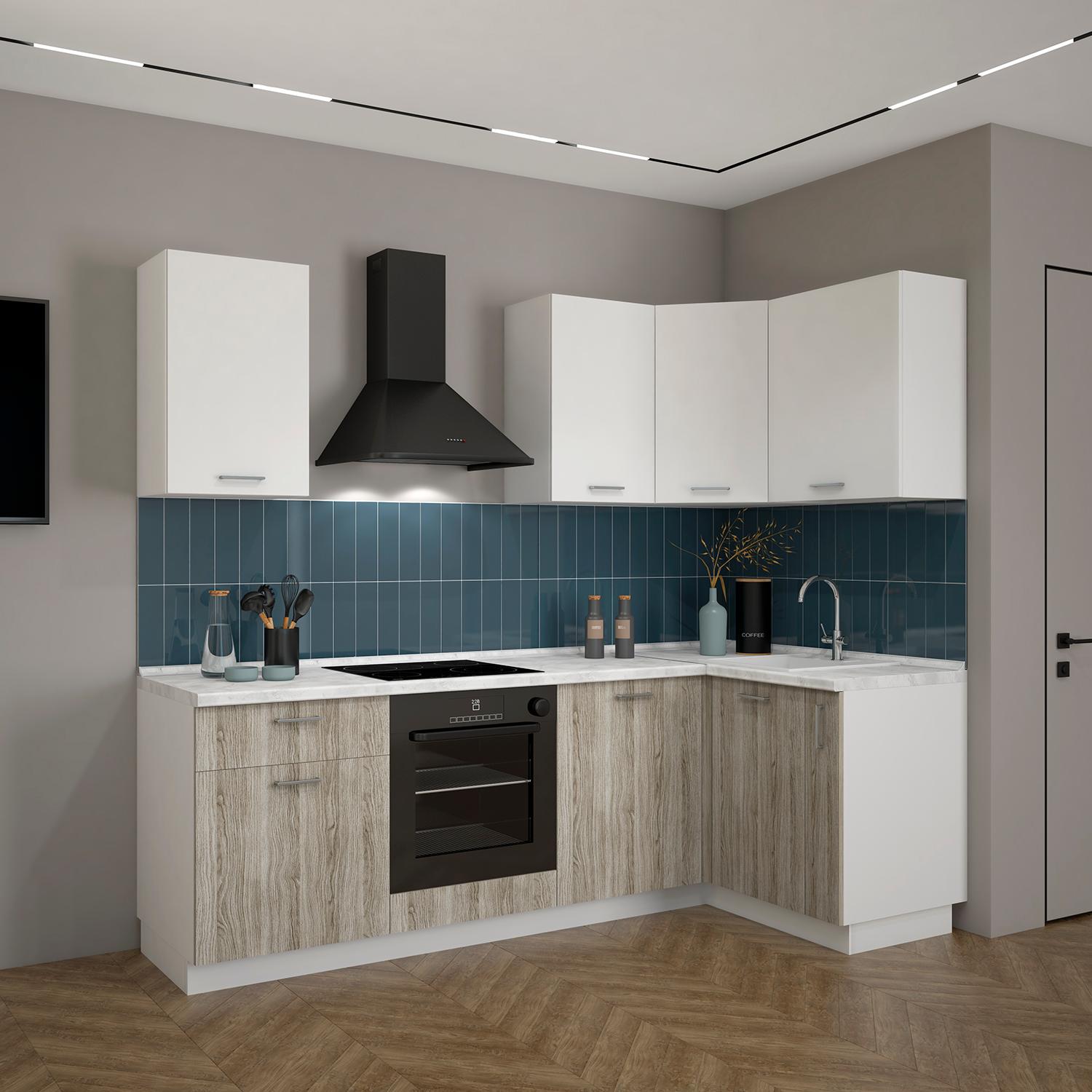 Кухонный гарнитур Рондо 11, 214х240х120х60 см, Белый, Дуб натуральный, левый