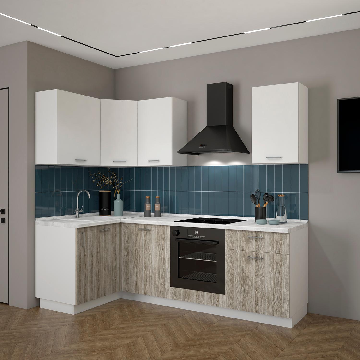 Кухонный гарнитур Рондо 11, 214х240х120х60 см, Белый, Дуб натуральный, правый