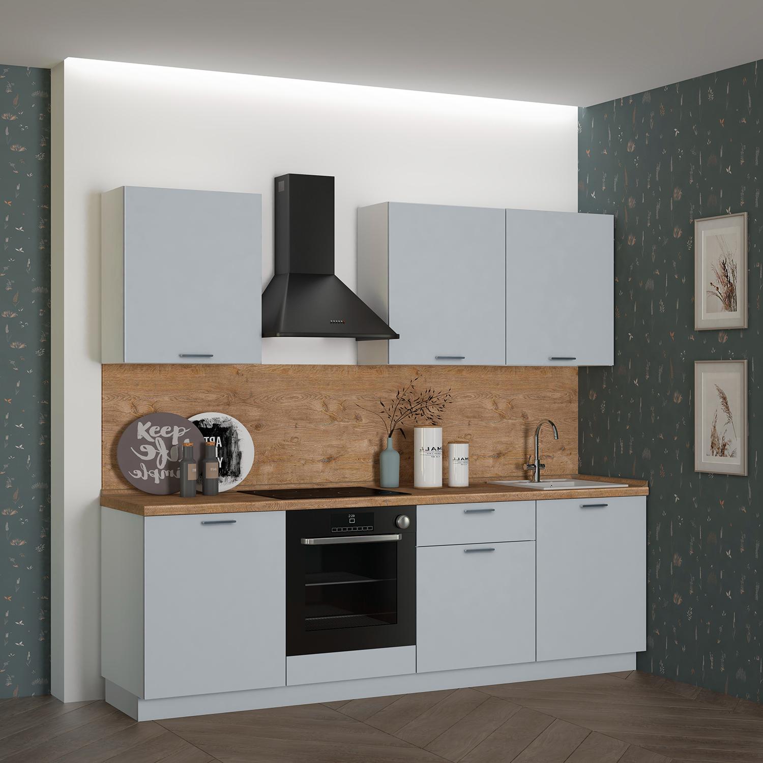 Кухонный гарнитур Рондо 6, 214x240x60 см, Светло-серый, левый