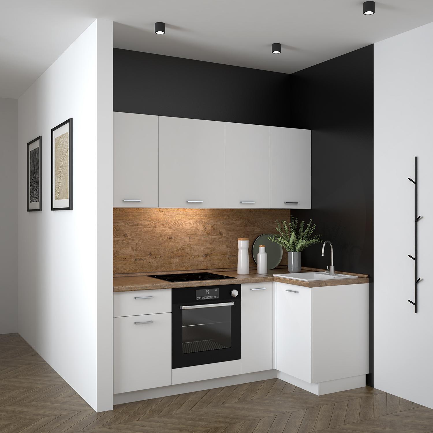 Стильный и современный дизайн в сочетании с практичностью делает угловую кухню идеальной для любого интерьера. Вы можете выбрать фасады из 4 цветовых решений, что позволит вам легко адаптировать мебель под свой индивидуальный стиль.