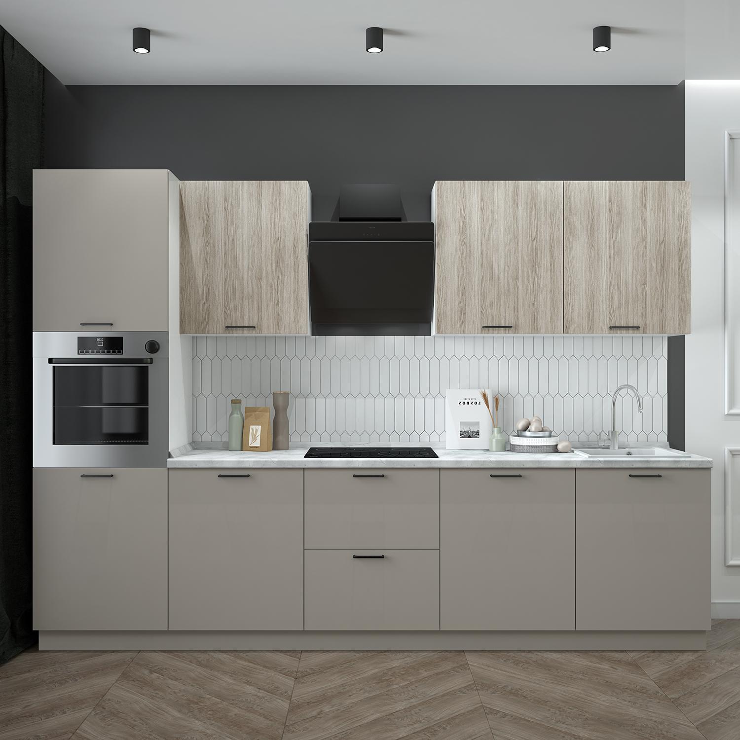 Гарнитур изготовлен из прочного, экологически чистого немецкого материала бренда Egger, который подарит вам комфорт и избавит от хлопот на много лет. Этот универсальный гарнитур подойдет и для компактного помещения и для просторной кухни.